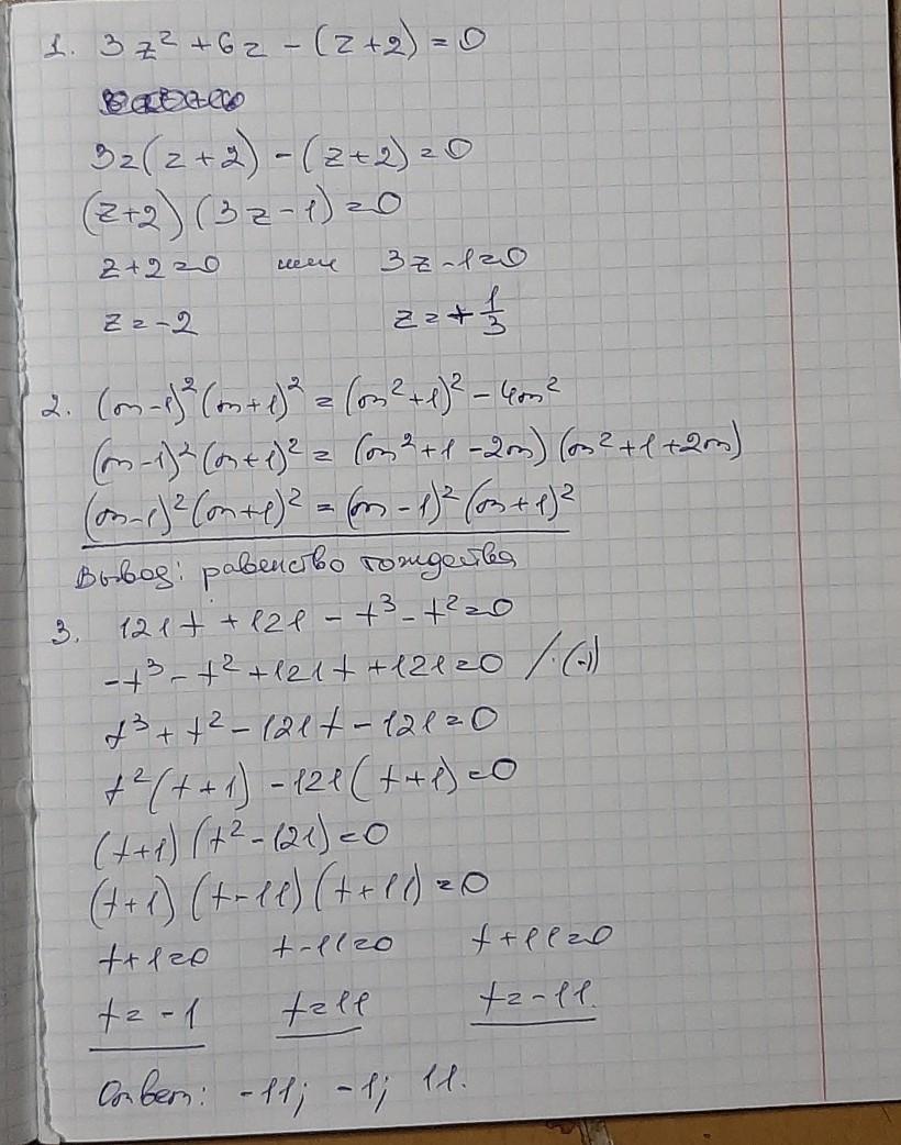 2. Является ли равенство (m−1)^2(m+1)^2=(m^2+1)^2−4m^2 тождеством?