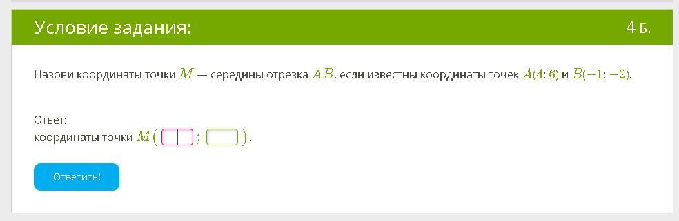 М (1.5;2) по формуле (х1+х2)/2
