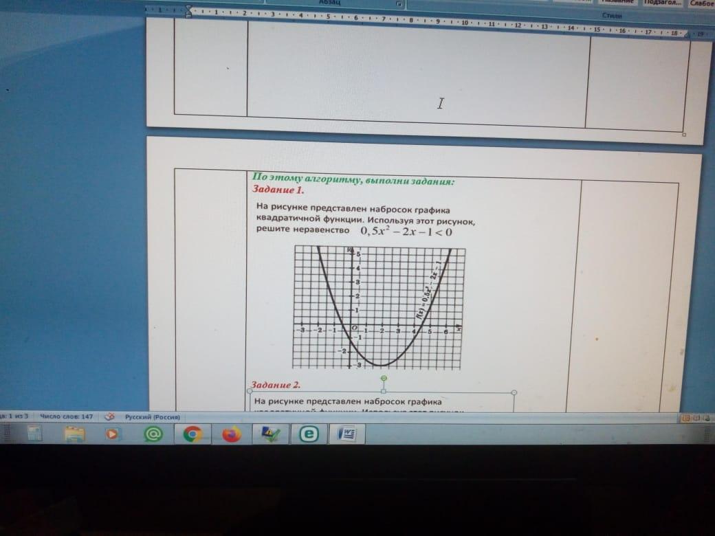 помогите решить задачу пожайлуста На рисунке предоставлен набросок графика квадратичной функции. Используя этот рисунок, решите неравенство 0,5x^-2x-1<0