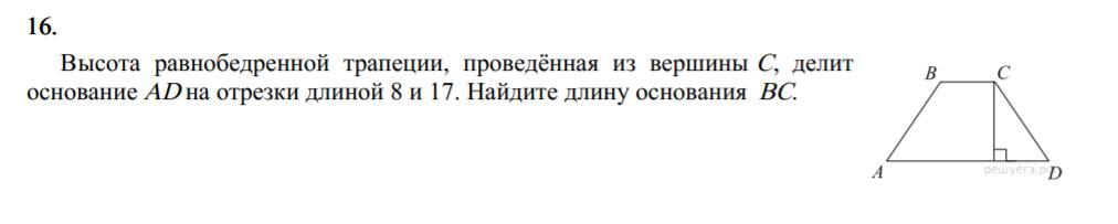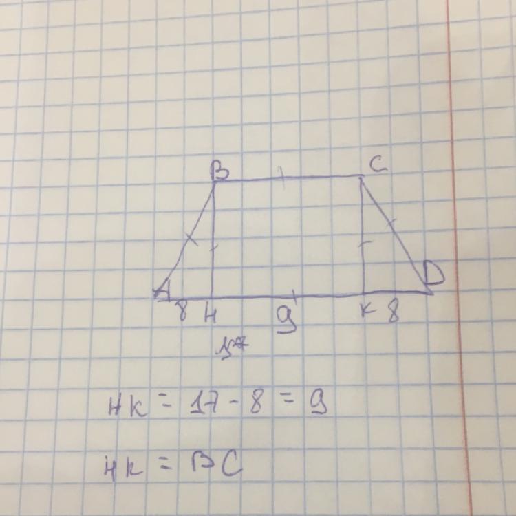 16 нк=вс поскольку это равнобедренная трапеция и эти отрезки параллельны