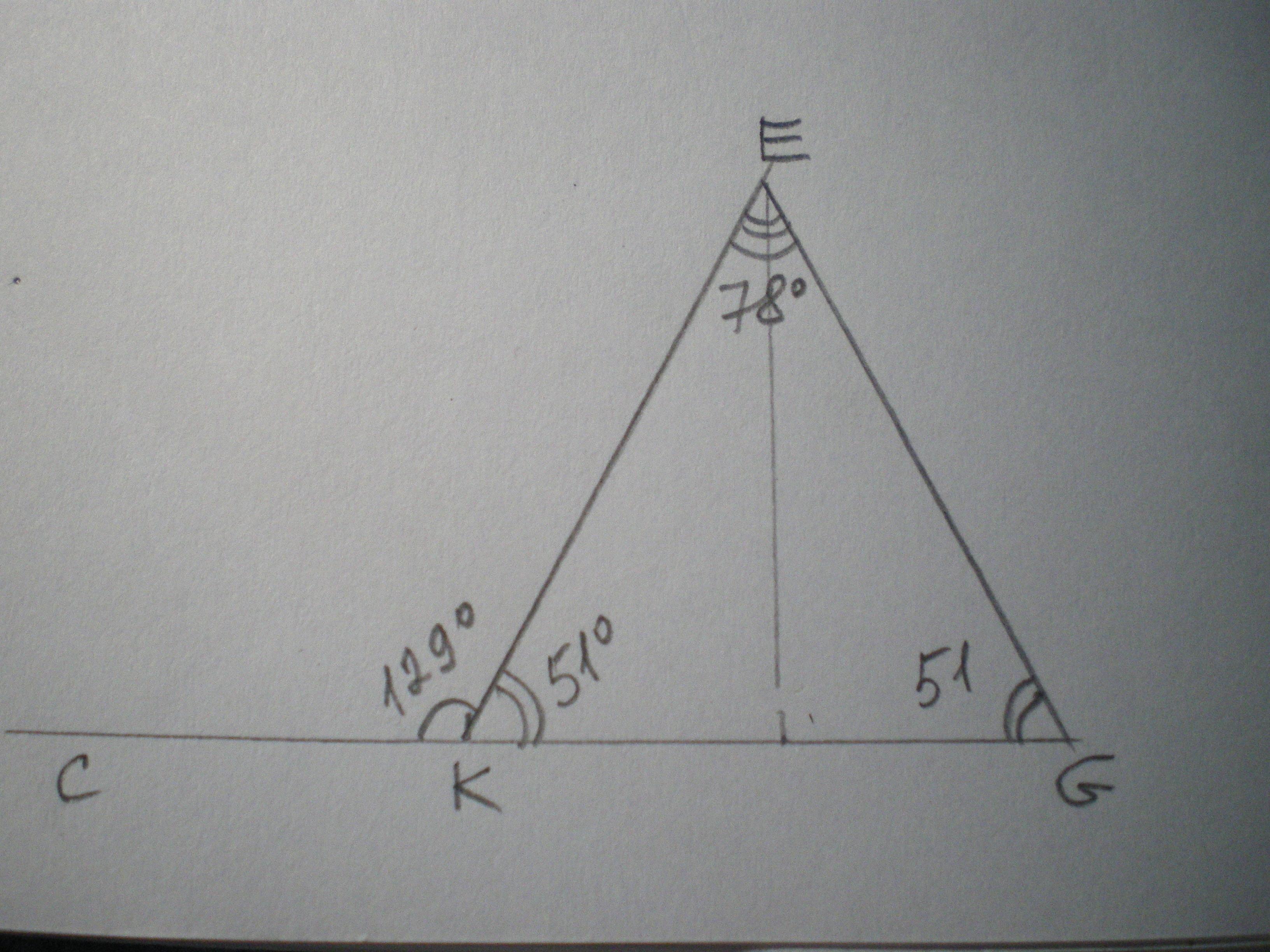 ∠ЕKG=∠ЕGK=51°, т.к. это углы при основании равнобедренного треугольника