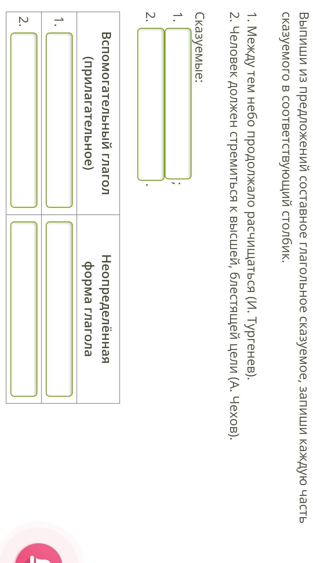 1)Выпиши из предложений составное глагольное сказуемое, запиши каждую часть сказуемого в соответствующий столбик.