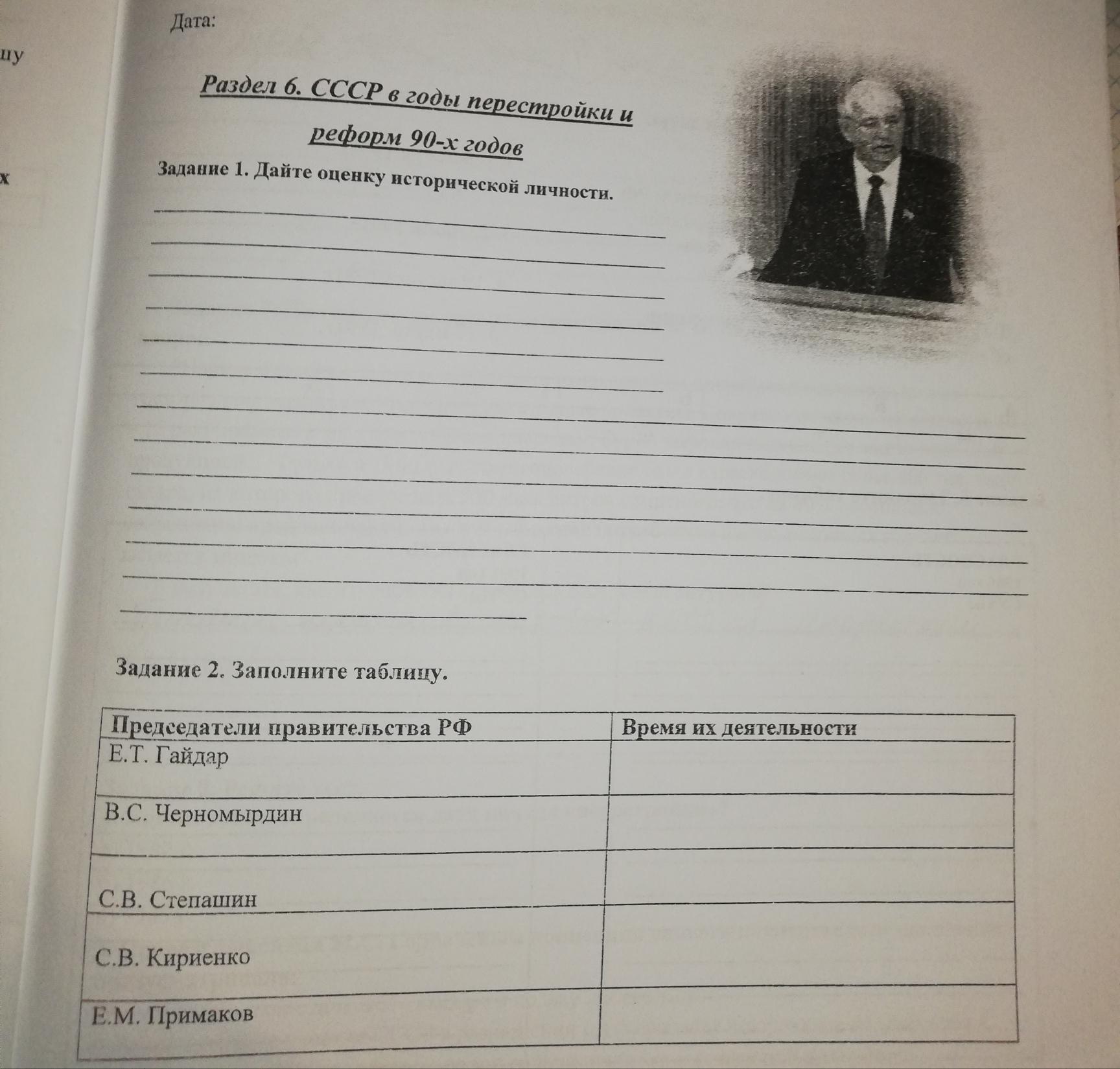 Задание 1 на картинке Горбачев. пожалуйста помогите