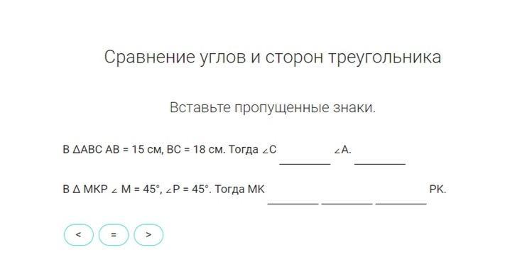 1)В треугольнике ABC AB=15 см, BC=18 см. Тогда угол С меньше угла А (т.к. напротив больший стороны лежит больший угол, ну а сторона AB меньше BC)