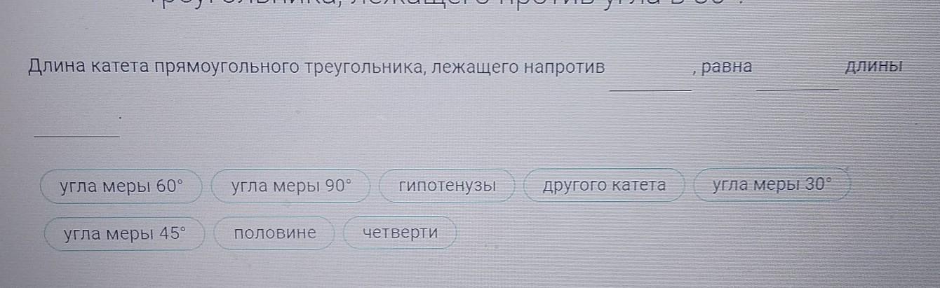 Ответ:напротив гипотенузы равна Половине