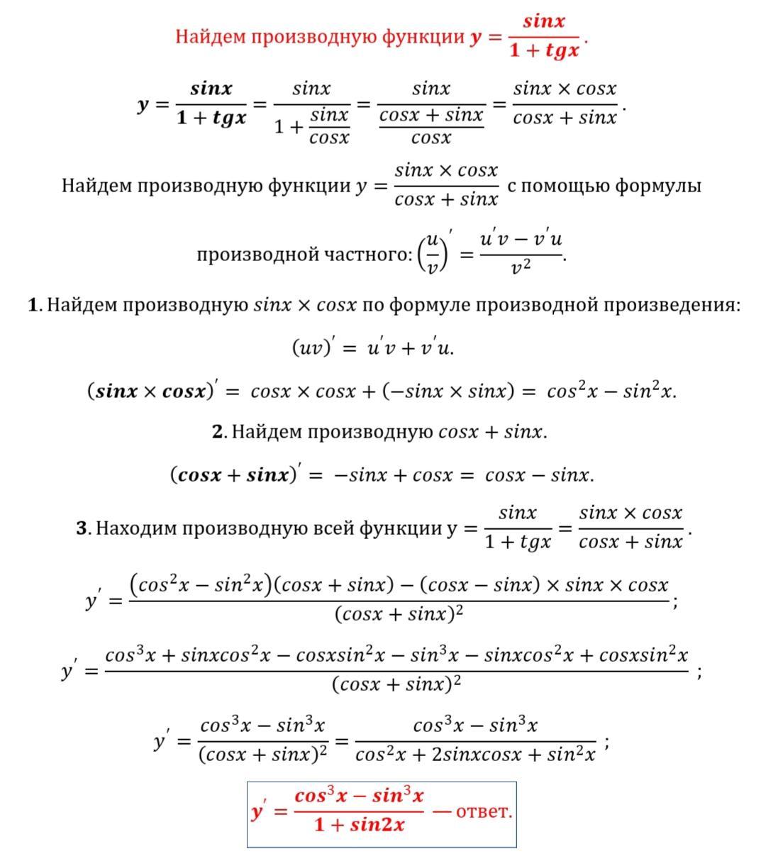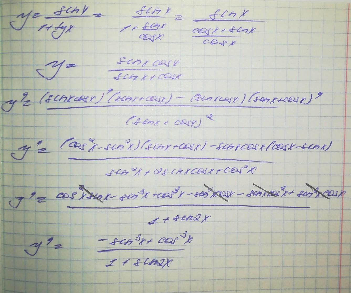 у= sinx / 1+tgx.