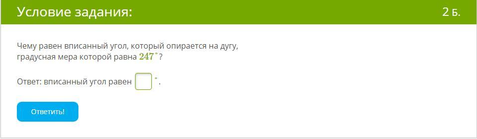 1) вписаный угол равен половине дуги, на которую он опирается, получаем 247/2=123.5°