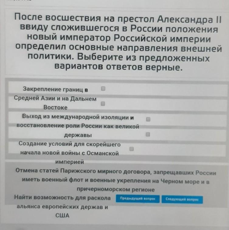 после восшествия на престол Александра 2 ввиду сложившегося в России положения новый император Российской империи Определил основные направления внешней политики Выберите из предложенных вариантов ответов верные.