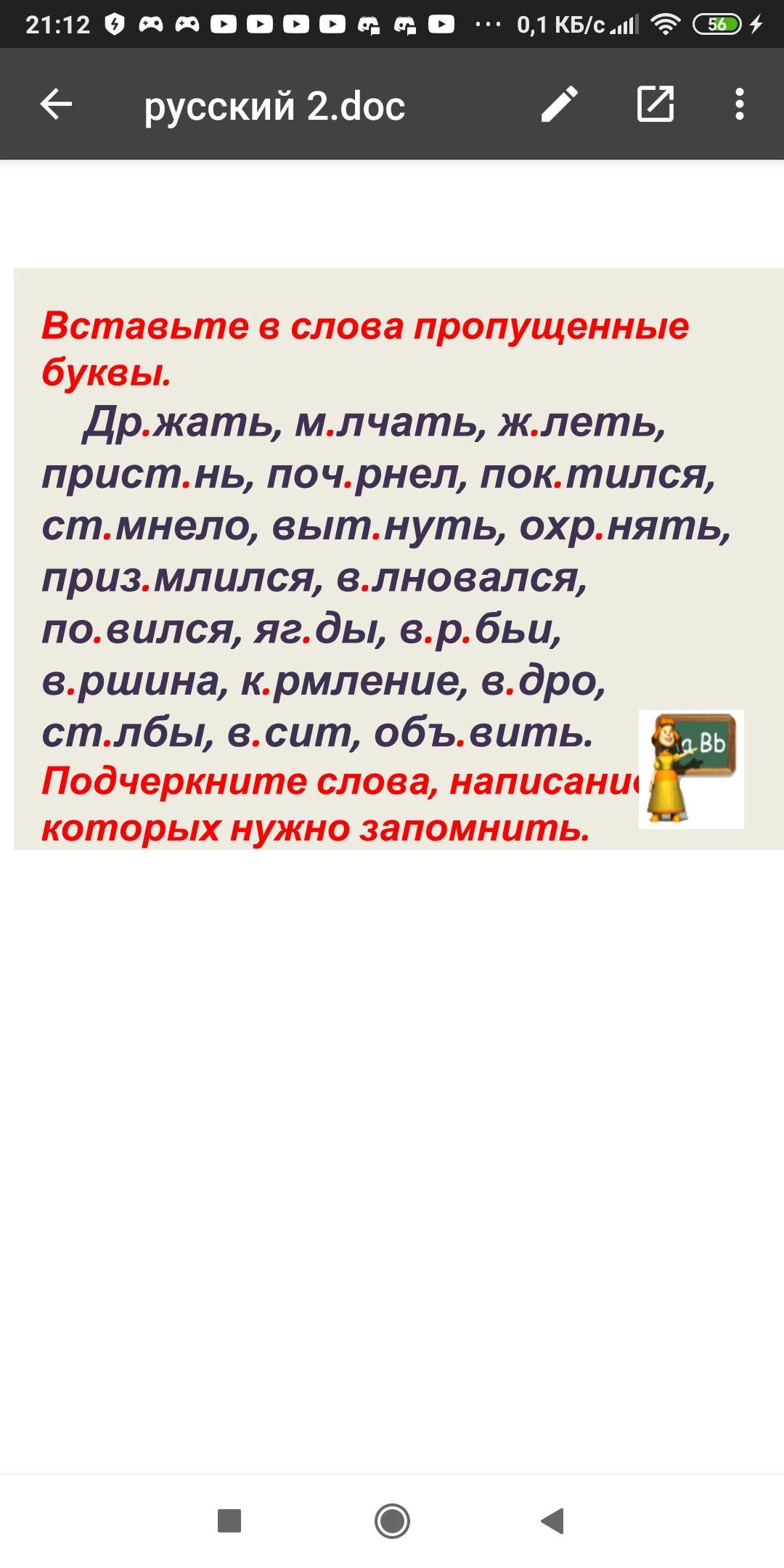 Дрожать, молчать,жалеть,пристань,почернел,покатился,стемнело,вытянуть,охранять,приземлился,волновался,появился,ягоды,воробьи,вершина,кормление,ведро,столбы,висит,объявить.