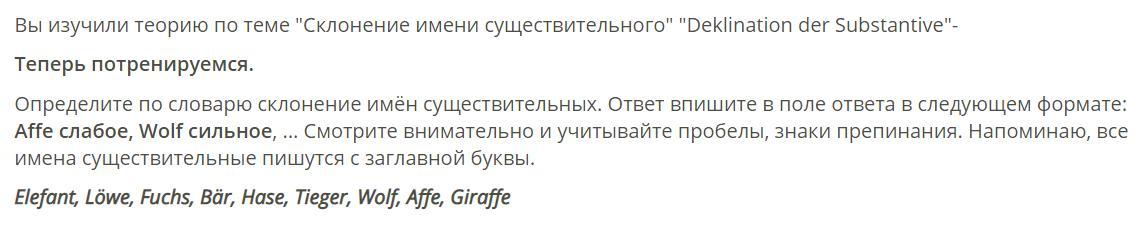 Elefant слабое, Löwe слабое, Fuchs сильное, Bär слабое, Hase слабое, Tiger сильное, Wolf сильное, Affe слабое, Giraffe женское.