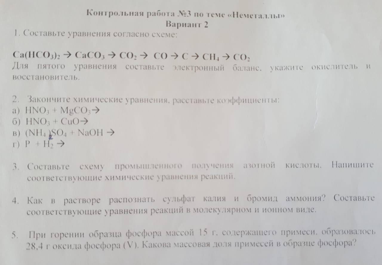 Помогите пожалуйста решить контрольную работу по химии 2вариат!