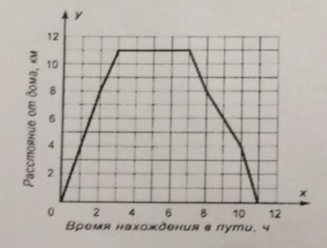 турист вышел из дома и через некоторое время вернулся назад. На рисунке изображён график движения туриста.