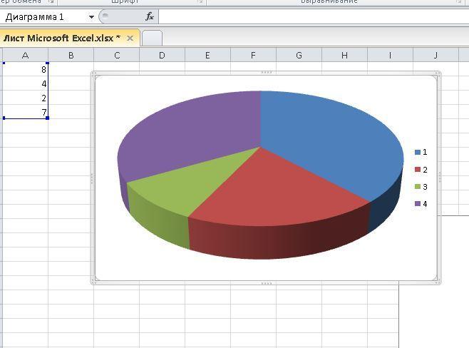 вставляете нужные цифры в таблицу, выделяете, делаете круговую и с помощью калькулятора считаете процентное соотношение, (вставка, надпись) пишите процентное соотношение.