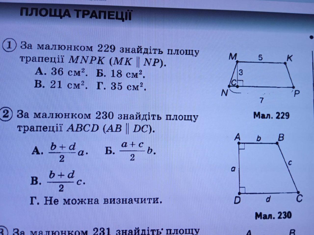 За малюнком 230 знайдіть площу трапеції ABCD (AB || DC)