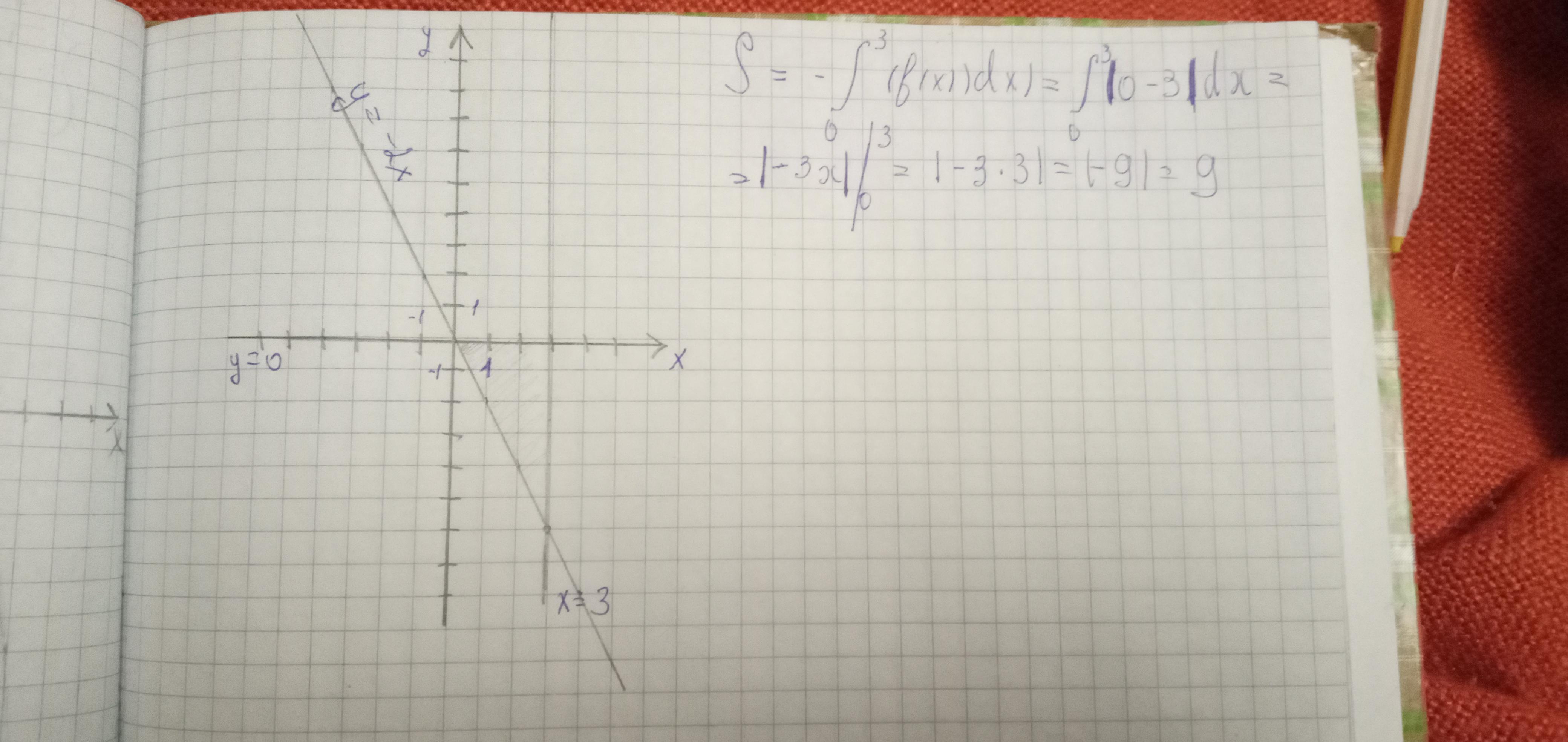 Площадь можно было ещё вычислить за формулой площади прямоугольного треугольника S=½ab (ответ получается такой же как и за формулой с интегралом)