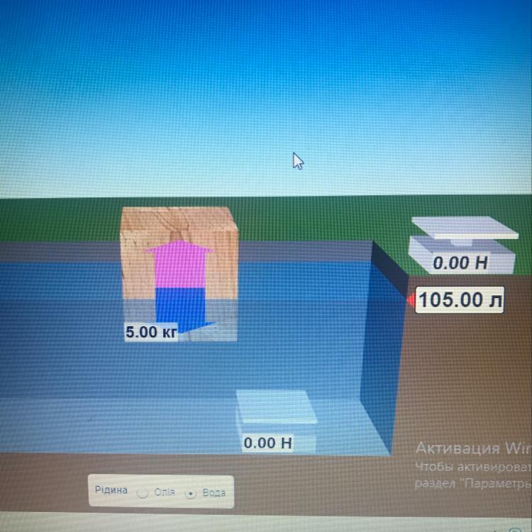 Вес бруска в атмосфере 50H. Найдите вес бруска в воде , а так же силу Архимеда действующая на него. Решать через эту формулу ! - Fapx=pgV