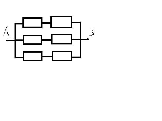 Параллельно 3 блока из двух последовательно соединенных резисторов