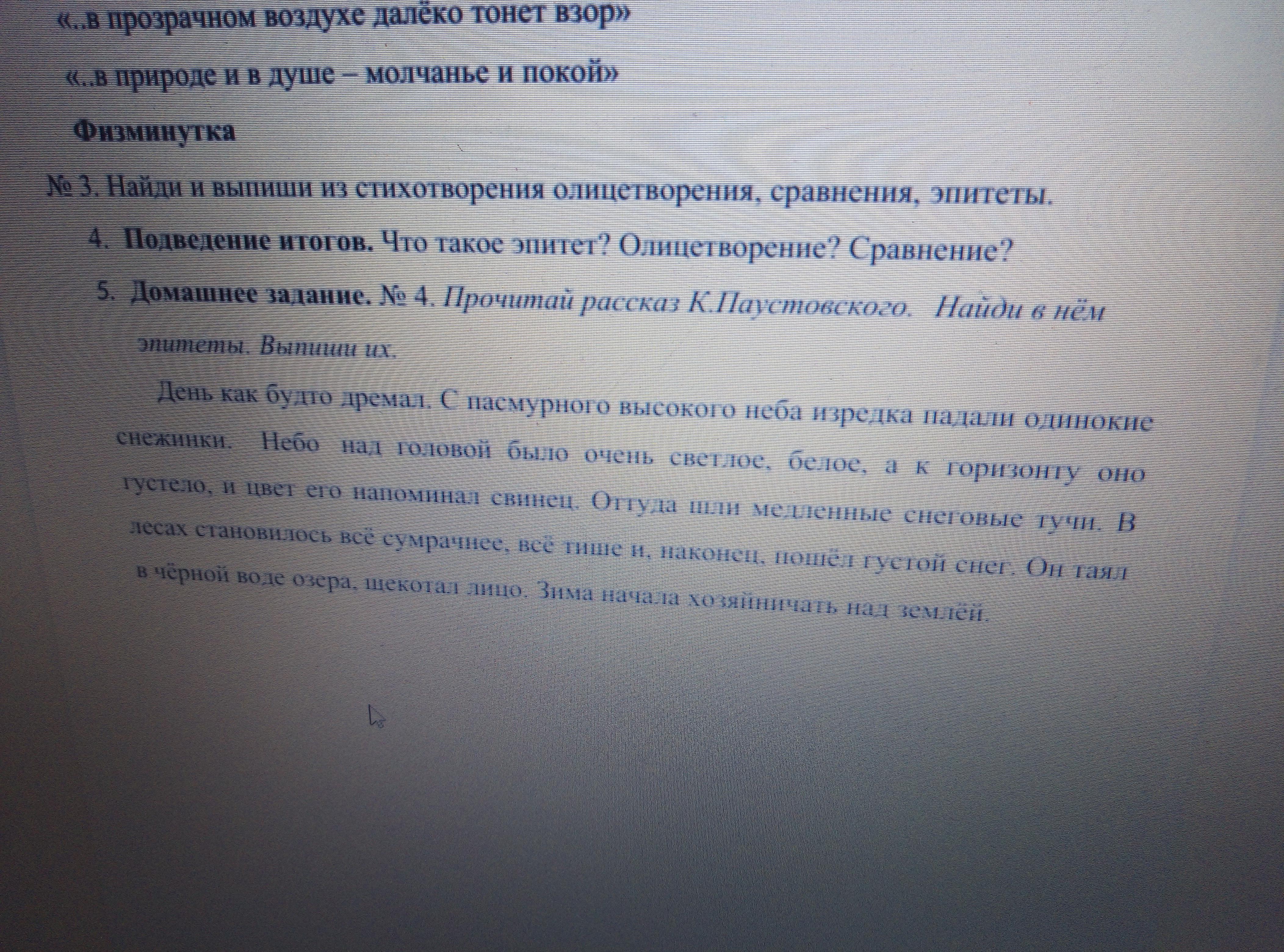 Эпитеты:высокого (неба), одинокие (снежинки), белое (небо), чёрной (воде).