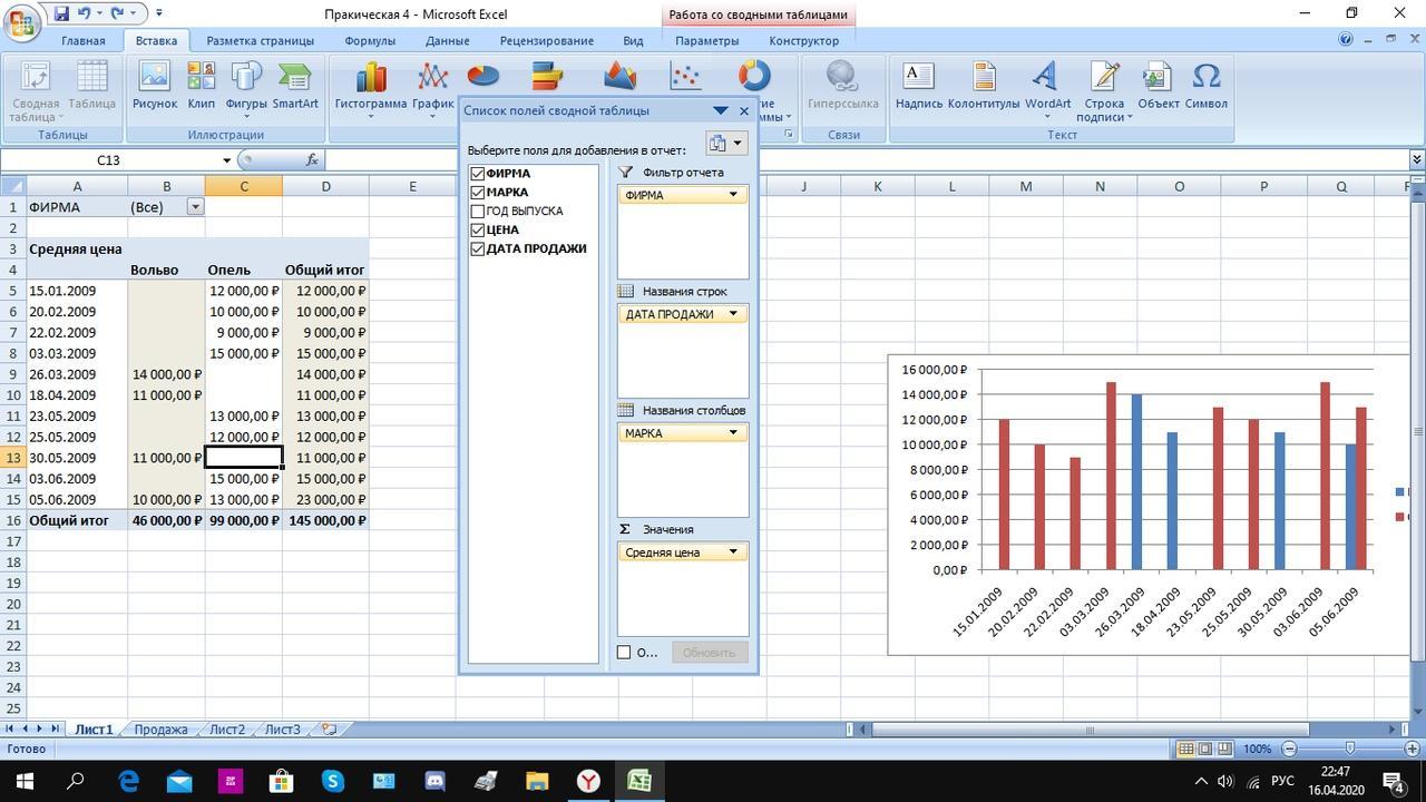 Сформируйте сводную таблицу, позволяющую оценить сумму продаж и даты продаж.
