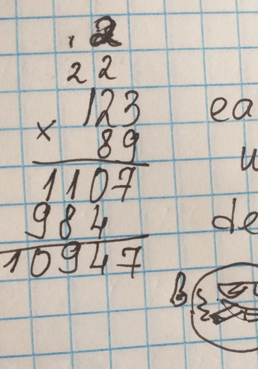 сначала столбиком умножаешь 123 на 9, затем на восемь