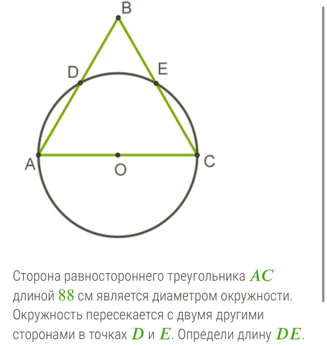 1) Проведём радиусы OD и ОЕ (они равны половине диаметра, то есть по 44 см)
