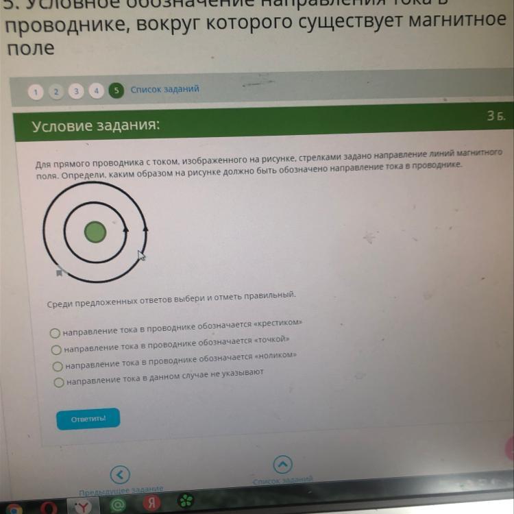 поля. Определи, каким образом на рисунке должно быть обозначено направление тока в проводнике,