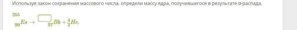 Используя закон сохранения массового числа, определи массу ядра, получившегося в результате α-распада.