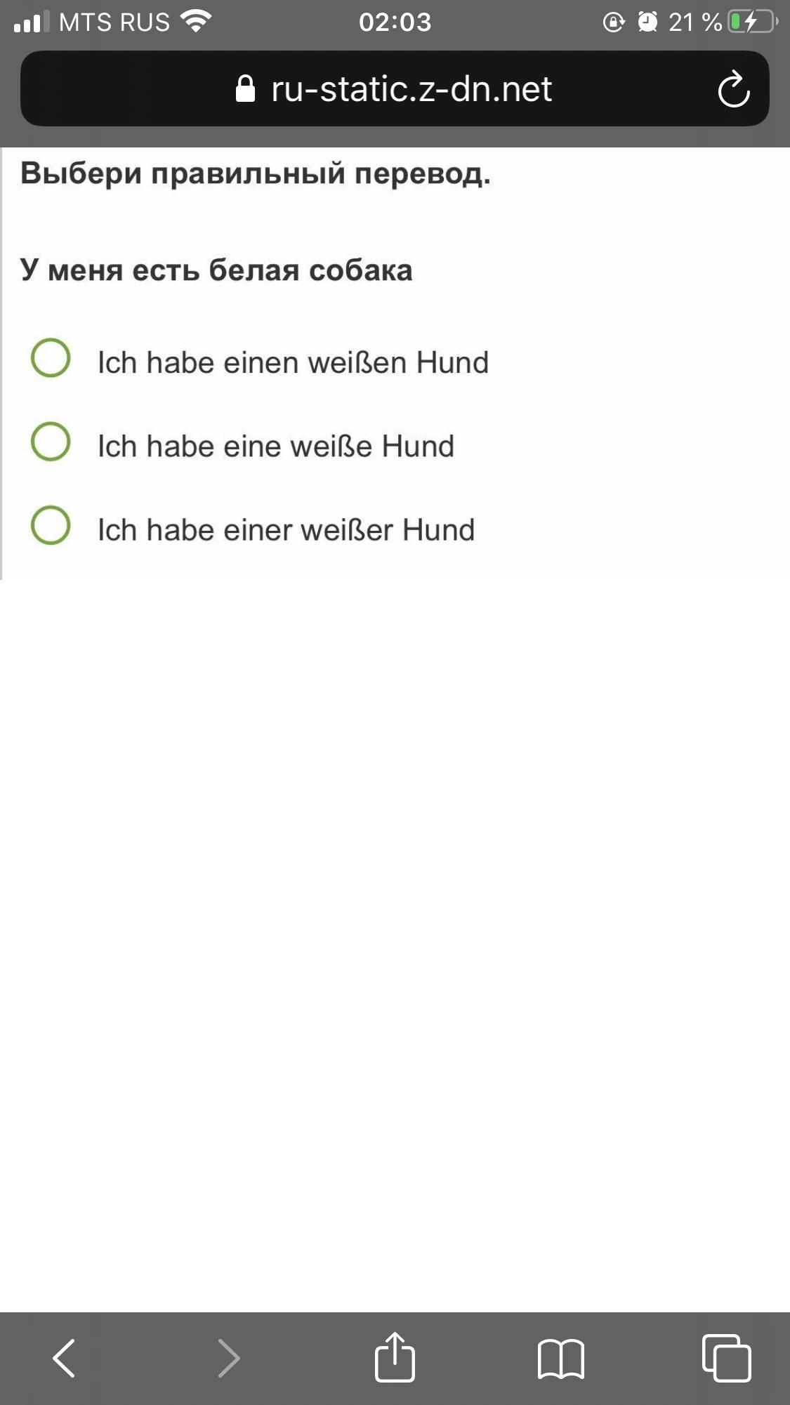 1) Ich kaufe (ein/neu) Fotoapparat. 2) Ich suche (ein/schön) Bluse. 3) Ich habe (kein/schnell) Auto.4)Das ist (mein/alt) Handy.5)Wir schreiben (ein /schwer) Mathearbeit.