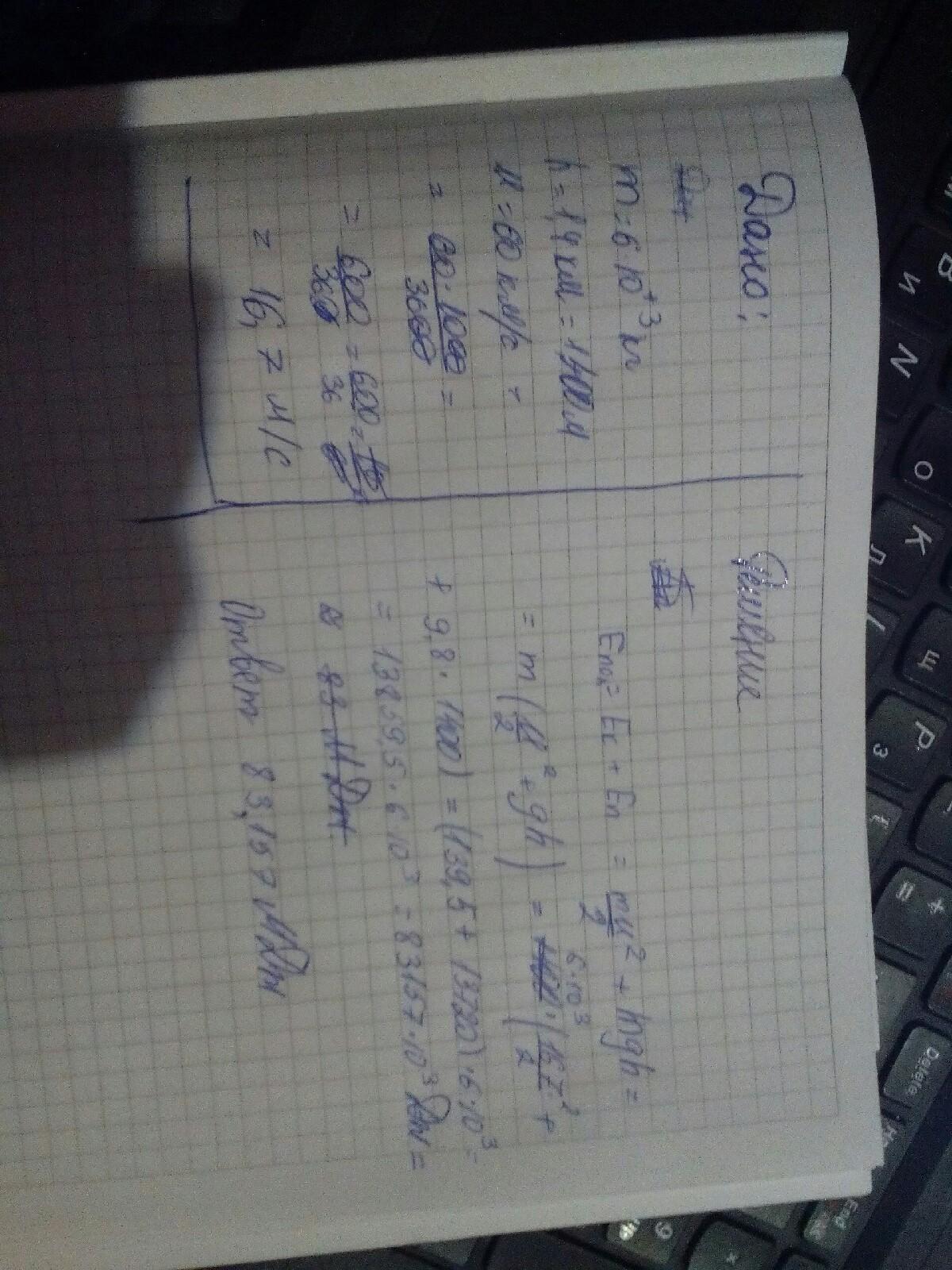 Какова полная механическая энергия дирижабля массой 6 тонн, если он летит на высоте 1,4 км со скоростью 60 км/ч?