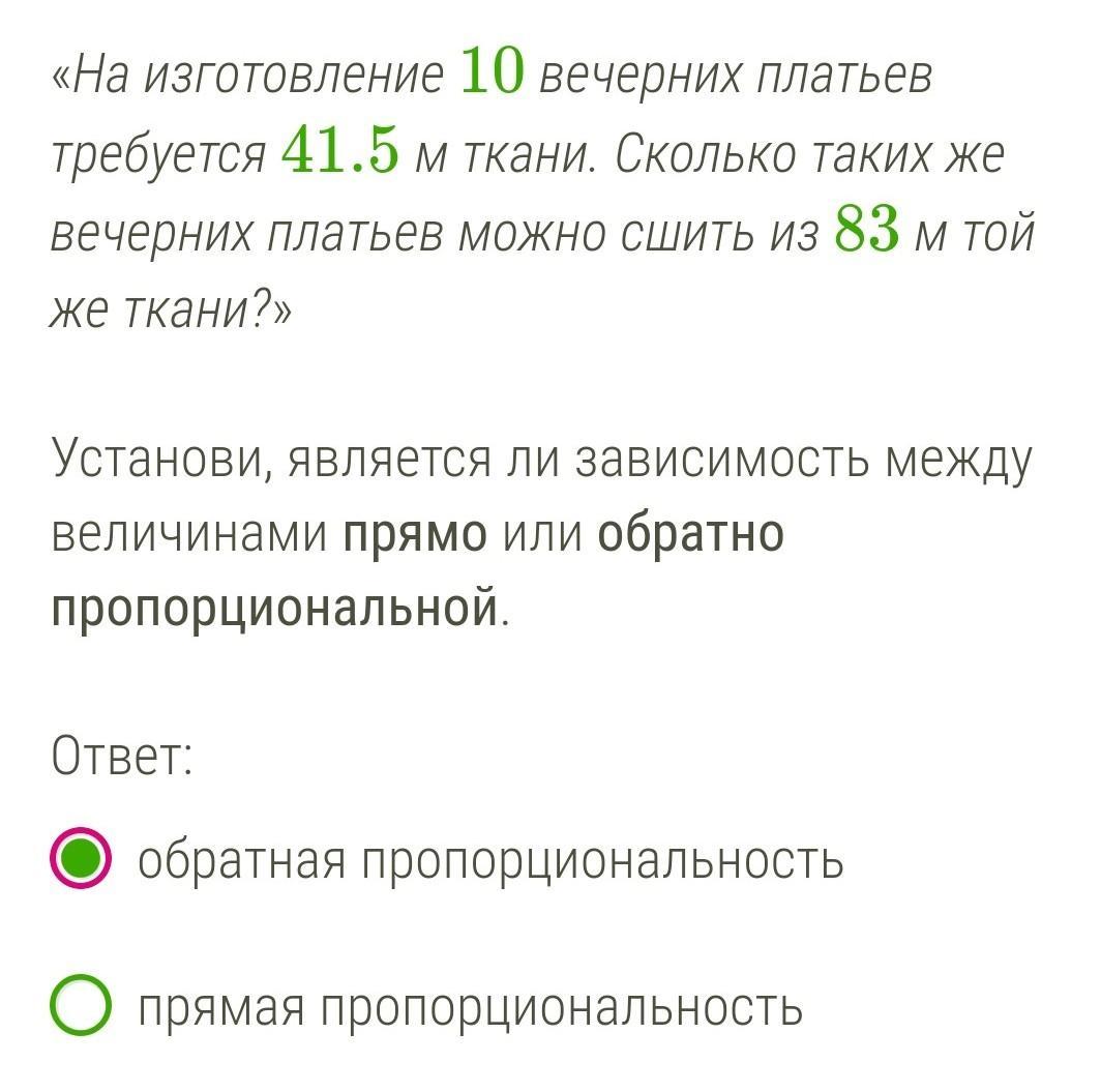 На изготовление 10 вечерних платьев требуется 41.5 м ткани. Сколько таких же вечерних платьев можно сшить из 83 м той же ткани?»