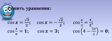 Пожалуйста,решение уравнений тема : Решение уровнения Cos x=a