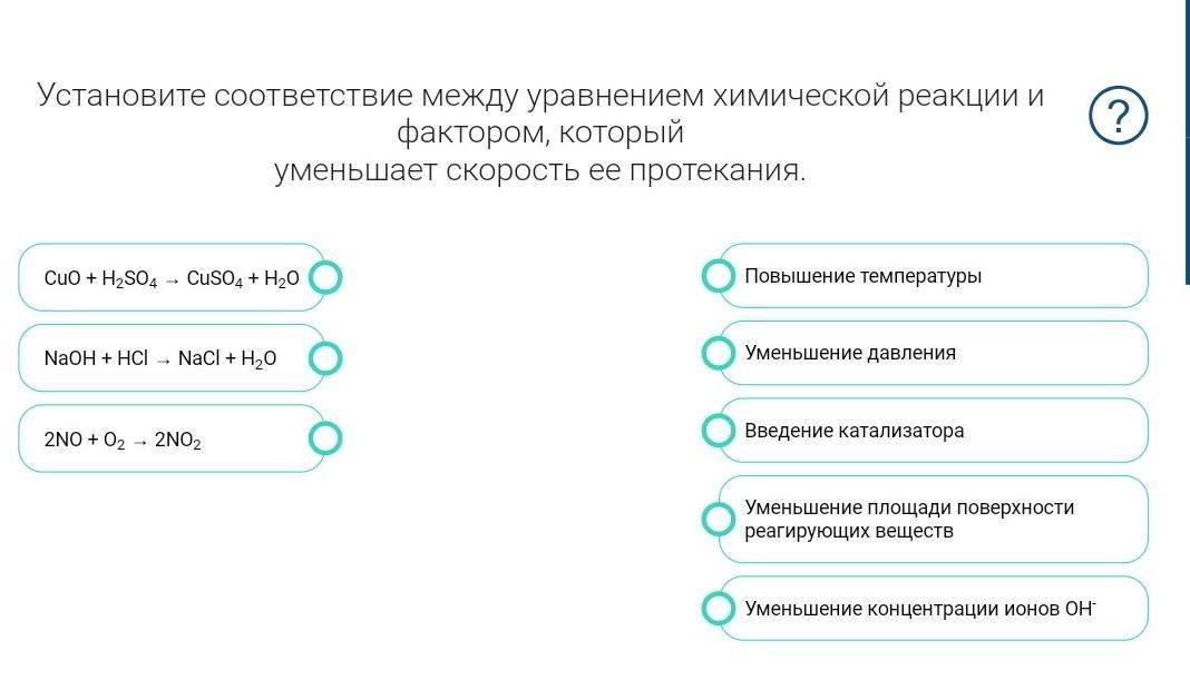 Установите соответствие между уравнением химической реакции и фактором, который