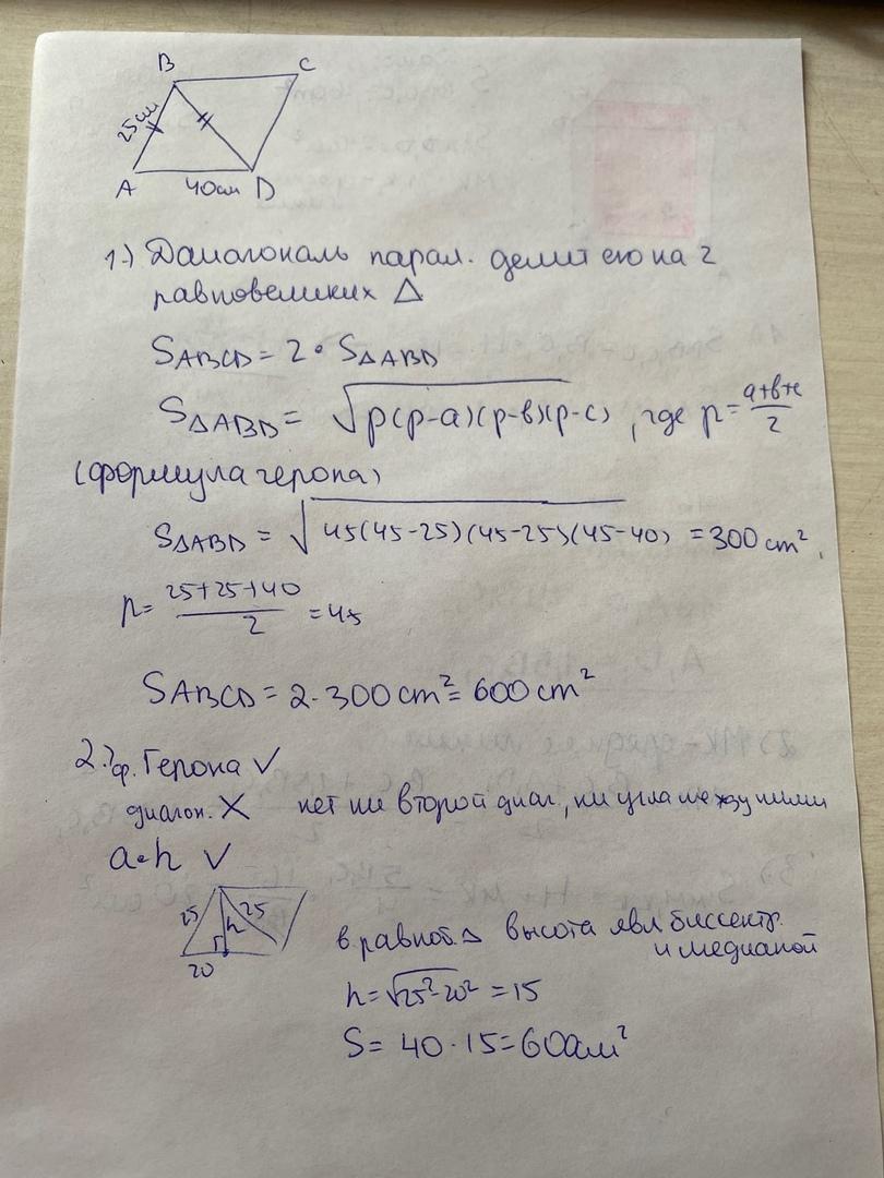 Формулу площади параллелограмма — умножение высоты и стороны