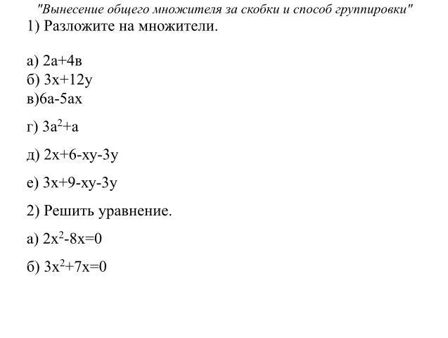 Алгебра.Вынесение общего множителя за скобки и способ группировки