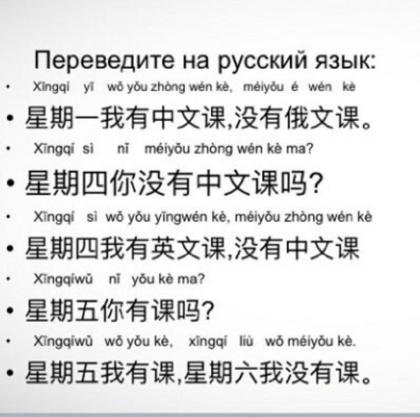 1У меня есть уроки китайского в понедельник, но нет русского.