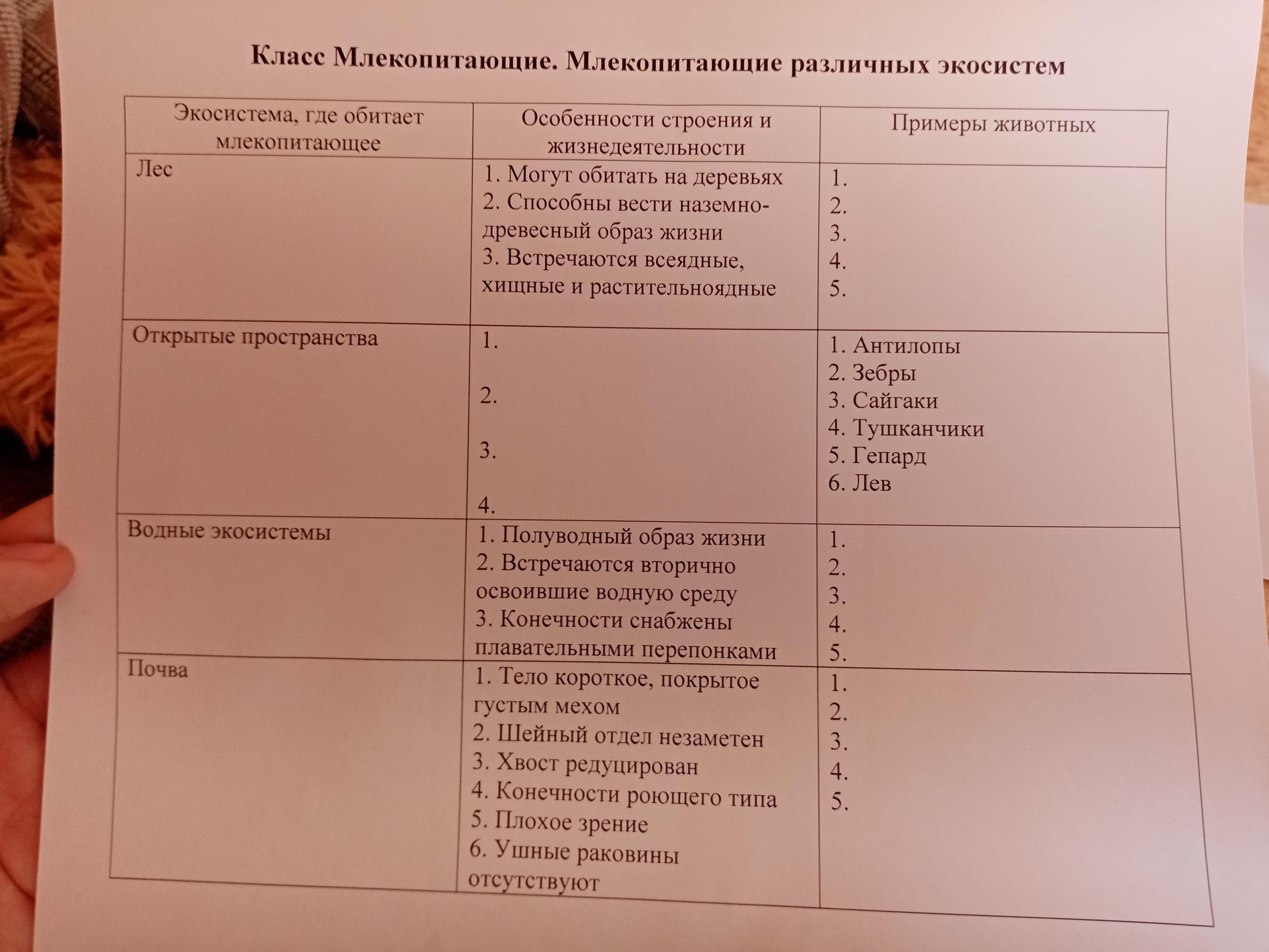 Помогите пожалуйста с таблицей по биологии (7 кл) !! У меня тест, пожалуйста!!((