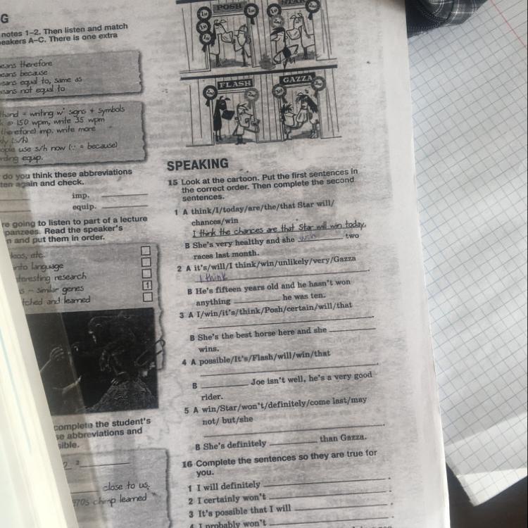 Посмотрите на эту карикатуру. Поставьте первые предложения в правильном порядке.Затем завершите второе предложение