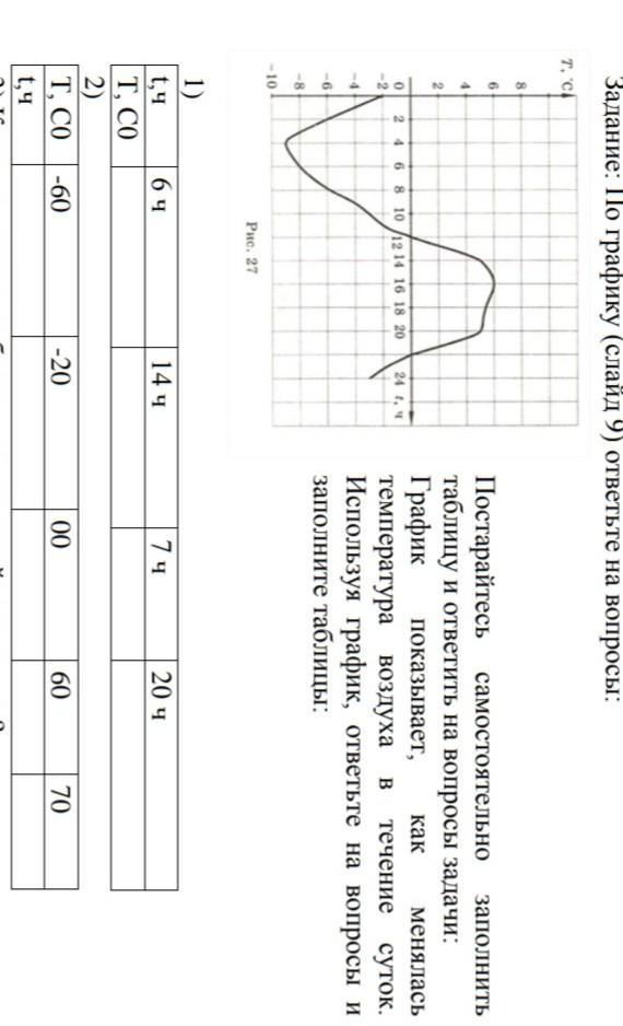 Постарайтесь самостоятельно заполните таблицу ответить на вопросы и задачи график показывает как менялось температура воздуха в течение суток используя график ответьте на вопросы и заполните таблицы
