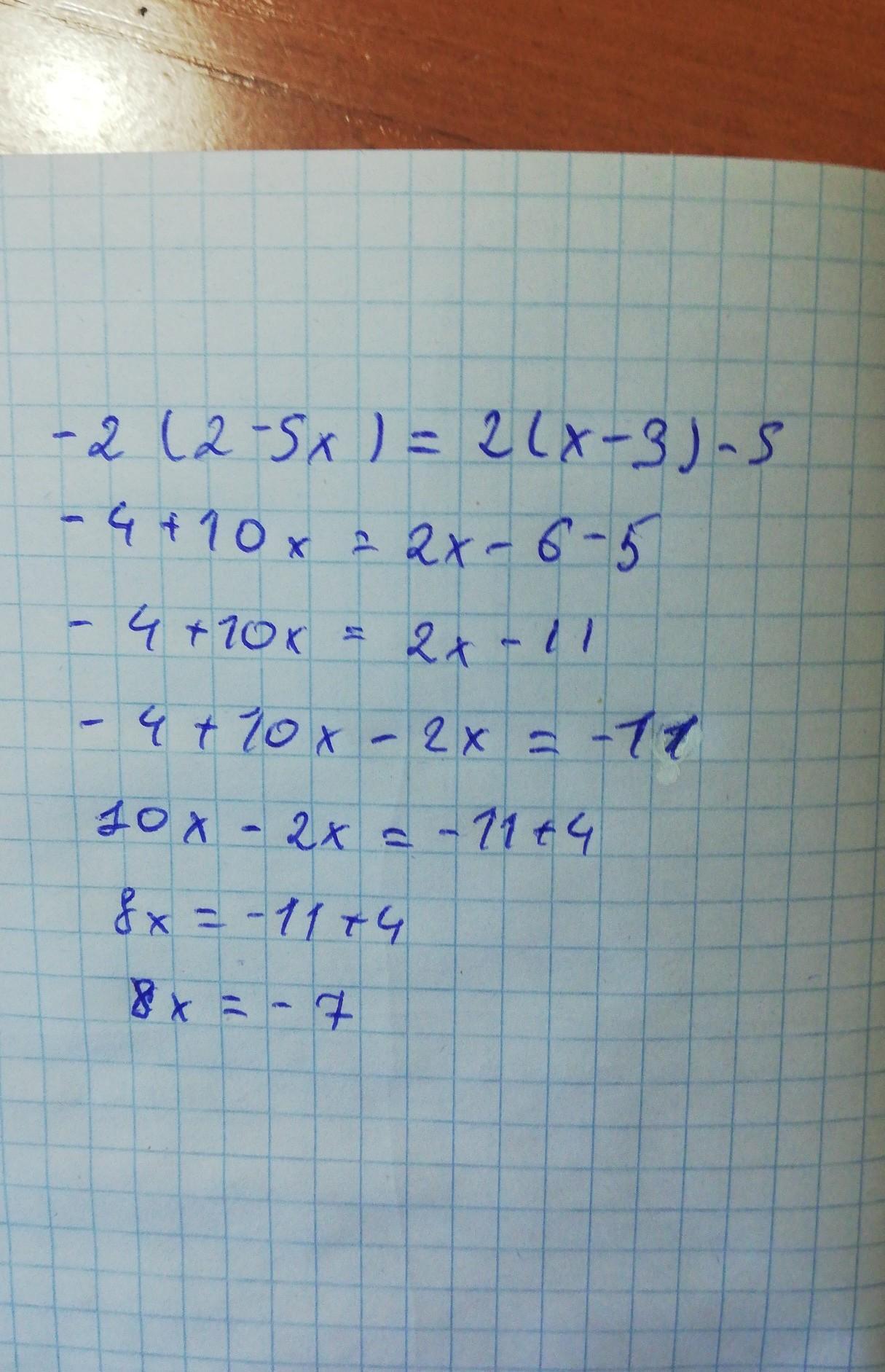 -2(2-5х)=2(х-3)-5