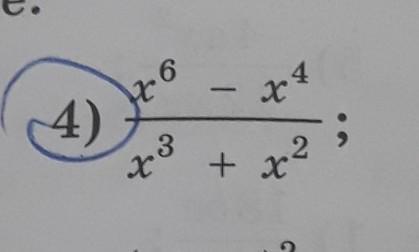 dfrac{x^6-x^4}{x^3+x^2}=dfrac{x^4cdot (x^2-1)}{x^2cdot (x+1)}=dfrac{x^2cdot (x-1)(x+1)}{x+1}=x^2cdot (x-1)