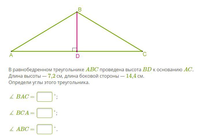 Длина высоты — 7,2 см, длина боковой стороны — 14,4 см.