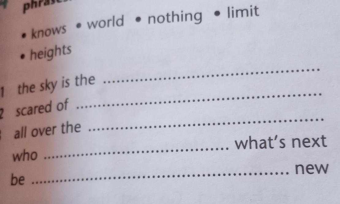 Ответ: 1. heights, 2. limit, 3. world, 4. knows, 5. nothing