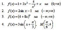 I. Найдите все первообразные F(x) для функции в 1-3 заданиях. В четвертом задании найдите для заданной функции f(x) ту первообразную, график которой проходит через точку М.