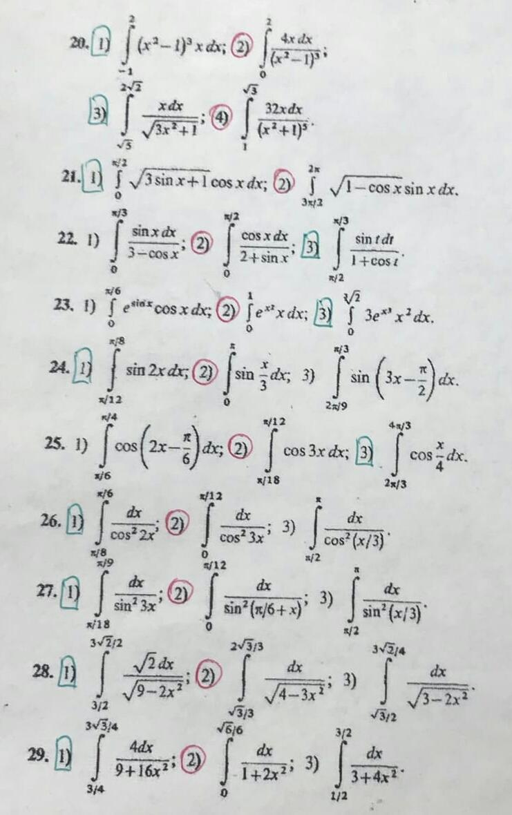 СРОЧНО НУЖНА ПОМОЩЬ С ИНТЕГРАЛАМИ (решить только то что обведено зеленым цветом) подробно пожалуйста