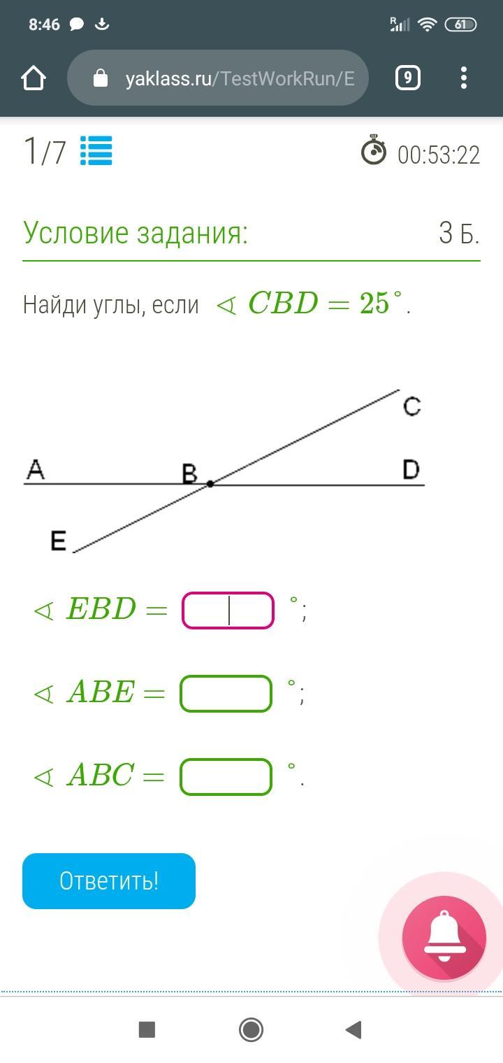 EBD= 180-25=155° (т. К. ЕВС развёрнутый угол)