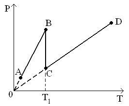 Зависимость давления газа от температуры для данной массы газа представлена на рисунке. Что произошло с газом при температуре Т1, если процесс протекал в направлении АBCD?