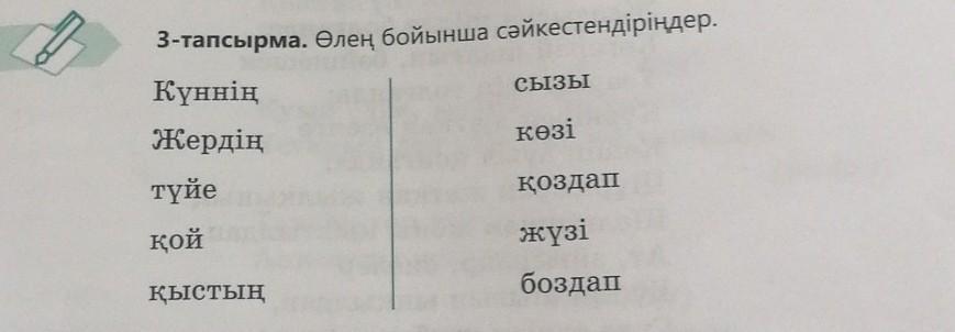 3-тапсырма. Өлең бойынша сәйкестендіріңдер.