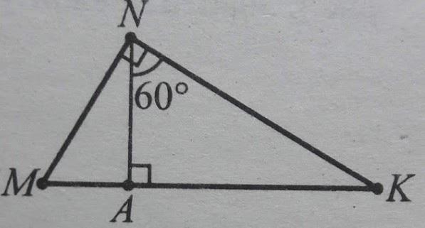 NA-висота, проведена з вершини прямого кута трикутника MNK. Кут ANK=60°, MA=8 см. Знайти довжину гіпотенузи МК.