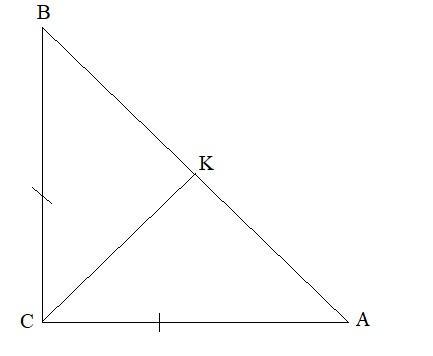 В равнобедренном прямоугольном треугольнике ABC с прямым углом C медиана CK=4. Найди длину катета AC, умноженную на √2.