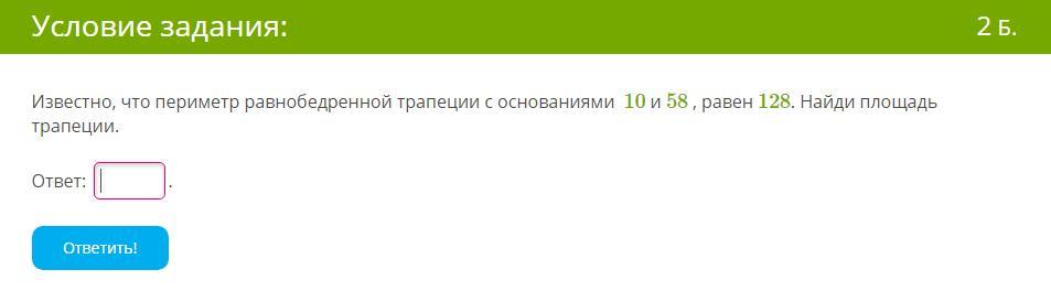 Если трапеция равнобедренная, то боковые грани равны. Найдём боковую грань: (128 - 10 - 58) / 2 = 30.